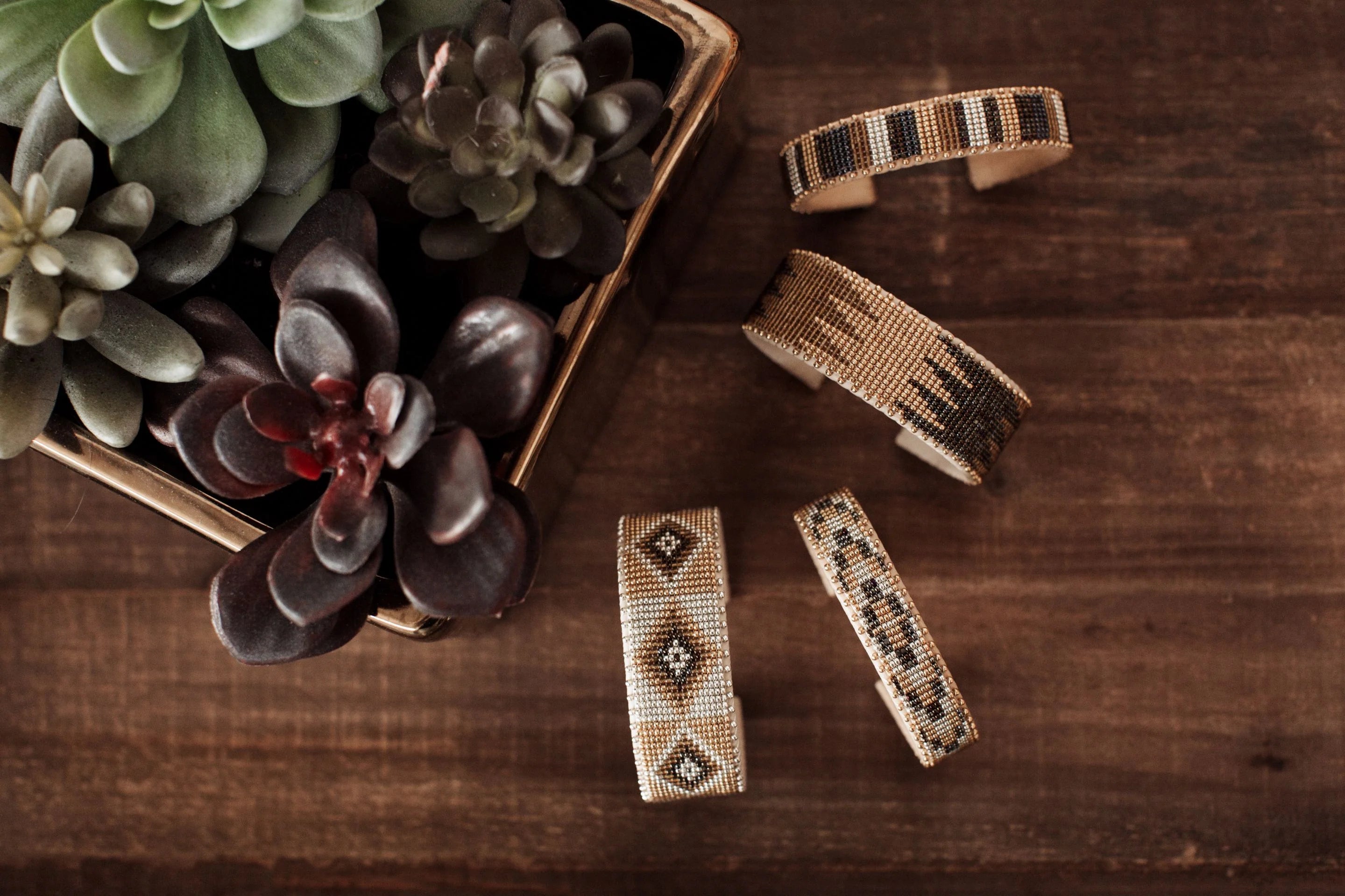 The New Mexico Desert Collection celebrates the strength and beauty of the desert within every woman. Each bead is dedicated to the fierce power we draw upon from deep within us, which like the desert is at once wild and still. In the deep blues we hear a midnight coyote sing to her silvery moon. In the golds and browns we feel the shimmering heat of the sun reflect against a mirror of sand. In every black bead we are reminded that it is within the darkness that we find the deepest rest.